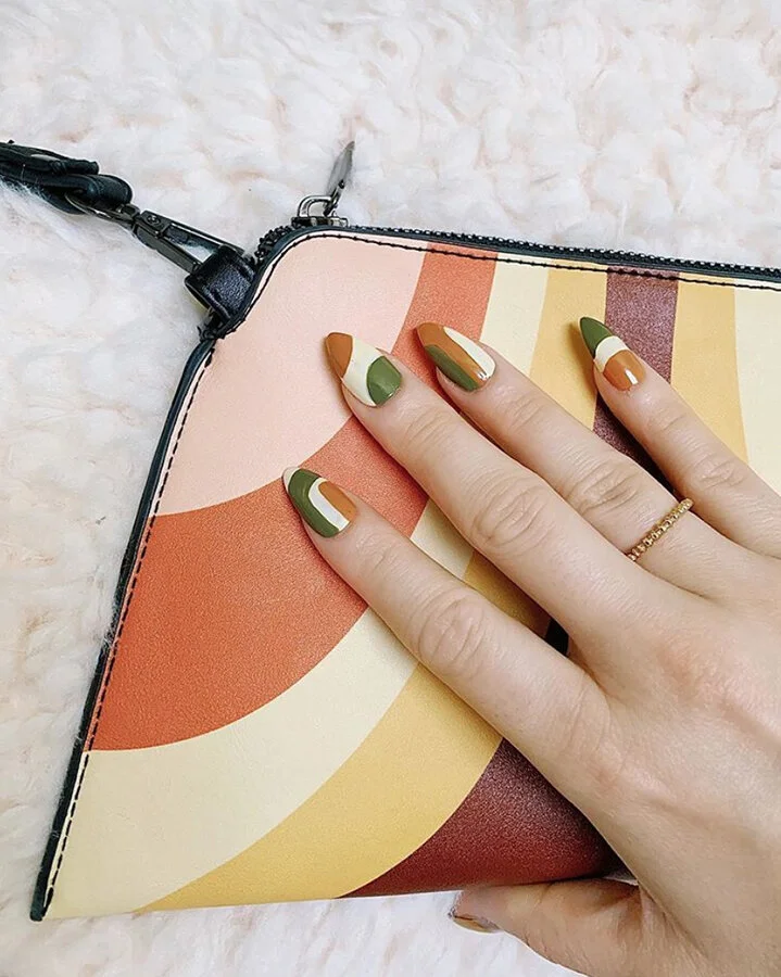 We love the fun fall colors in this ‘70s-inspired design by @beauty.bykt.
