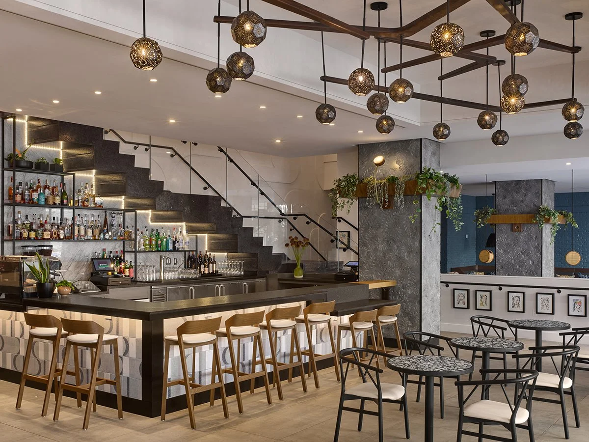 The Cafe & Lobby Bar offers a relaxed atmosphere with a menu that serves a variety of delicious options. [Photo credit: Courtesy of Alma San Diego Downtown]