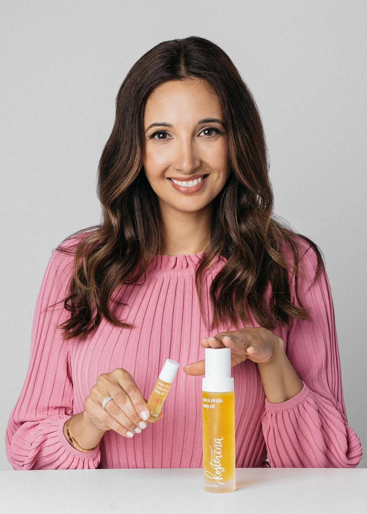 Our latest Beauty Boss is Katerina (Katina) Mountanos, Founder of Kosterina—an olive oil-based skincare and lifestyle line that is inspired by the best parts of the Mediterranean lifestyle. Their signature extra virgin olive oils and specialty vinegars are available at retailers nationwide including Bloomingdales, Crate & Barrel, Target, and Whole Foods, in addition to select restaurants and specialty grocers.