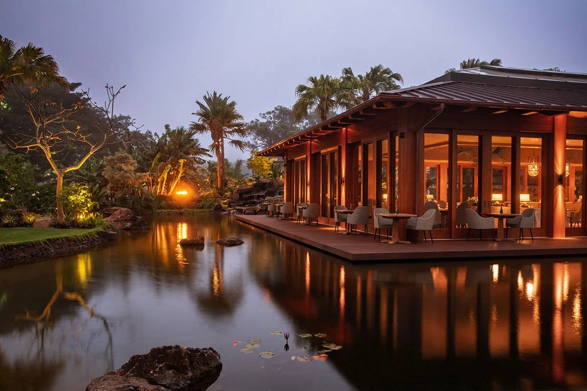 A visit to the southern point of Kaua’i will bring you to the city of Po’ipū and the gorgeous Grand Hyatt Kaua’i Resort & Spa nestled along Keoniloa Bay. The eco-friendly property is surrounded by an intricate array of lush gardens, swaying palm trees, acres of pools, and serene waterfalls—all of which excellently complement its 605 guest rooms and suites, several food and beverage outlets, 18-hole Poipu Bay Golf Course, and Anara Spa.