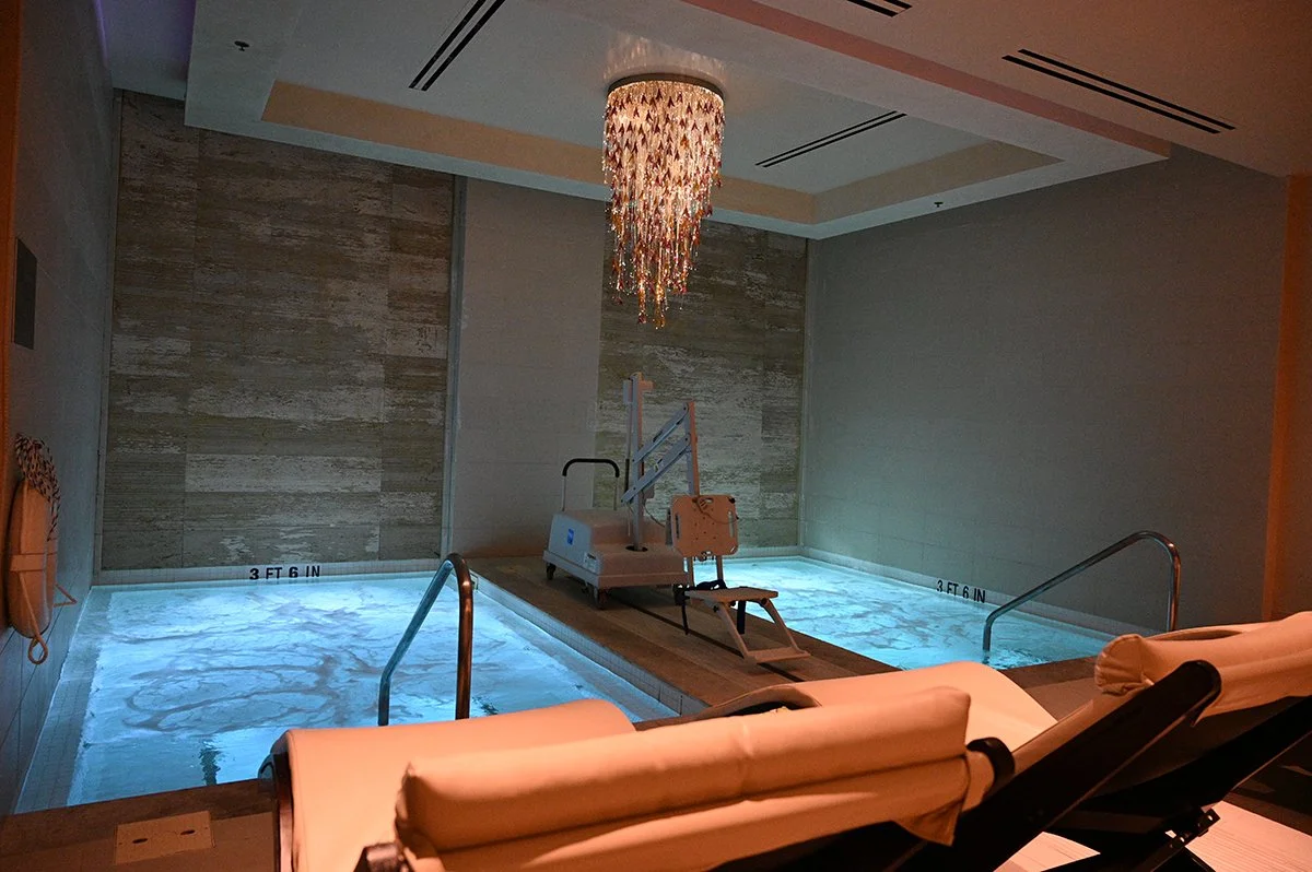 The spa’s hydrotherapy amenities include a jacuzzi and cold plunge. [Photo courtesy of M Resort Spa Casino]