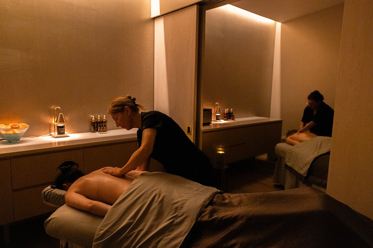 A curated menu of massages, facials, and body treatments invites guests to unwind in tranquil treatment rooms designed to calm the senses. Courtesy of exhale Atlanta