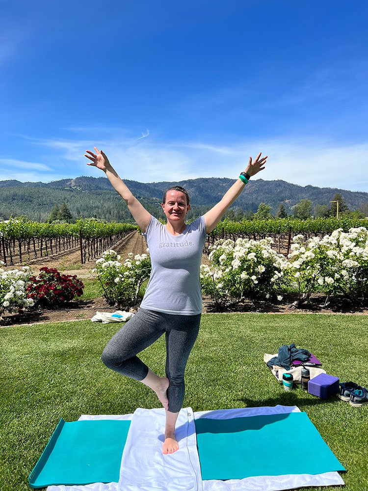 Journaliing at the Feed Your Soul Wellness Retreat at the Harvest Inn with vineyard views.