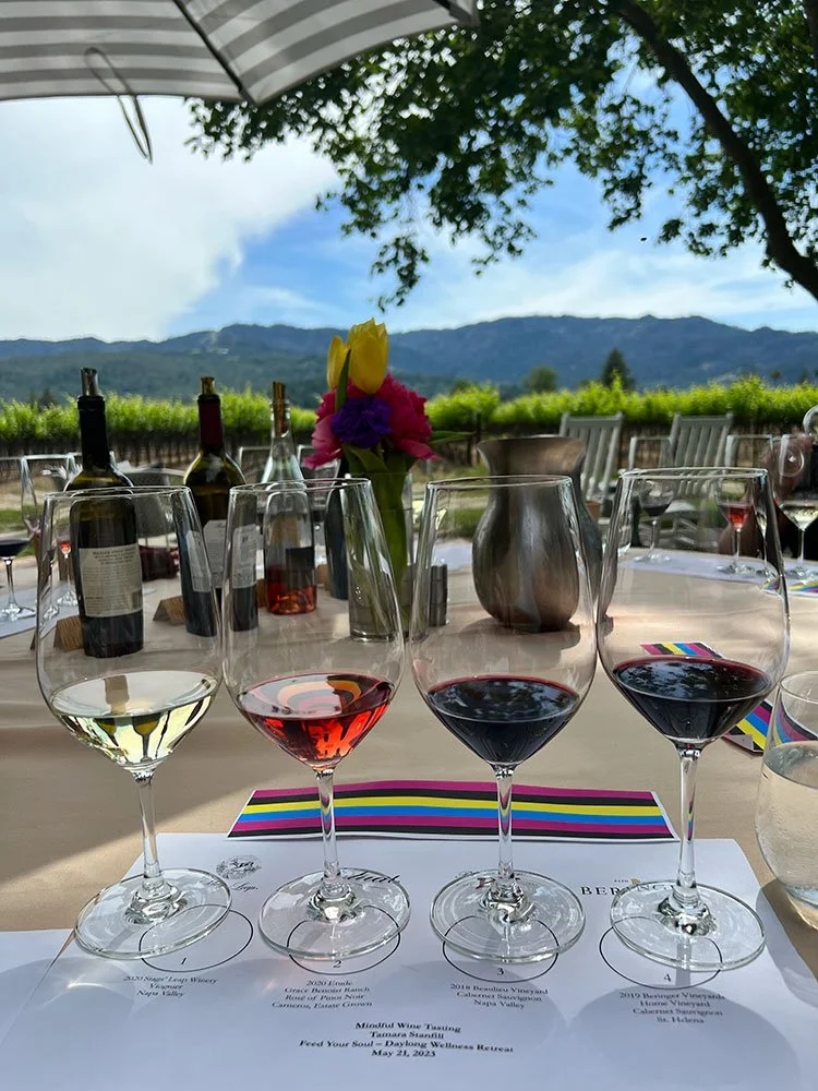 Tamara Stanfill not only led us through a thoughtful day of retreat activities, but is also very knowledgeable about wine. The retreat concluded with a mindful wine tasting and discussion. Our tasting included selections from Stags’ Leap Winery, Etude, Beaulieu Vineyard, and Beringer Vineyards.