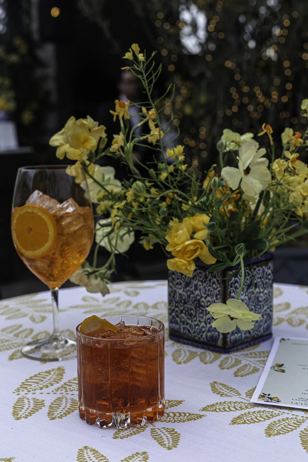 The menu features an assortment of inspired cocktails including Negroni and Aperol Spritzes.