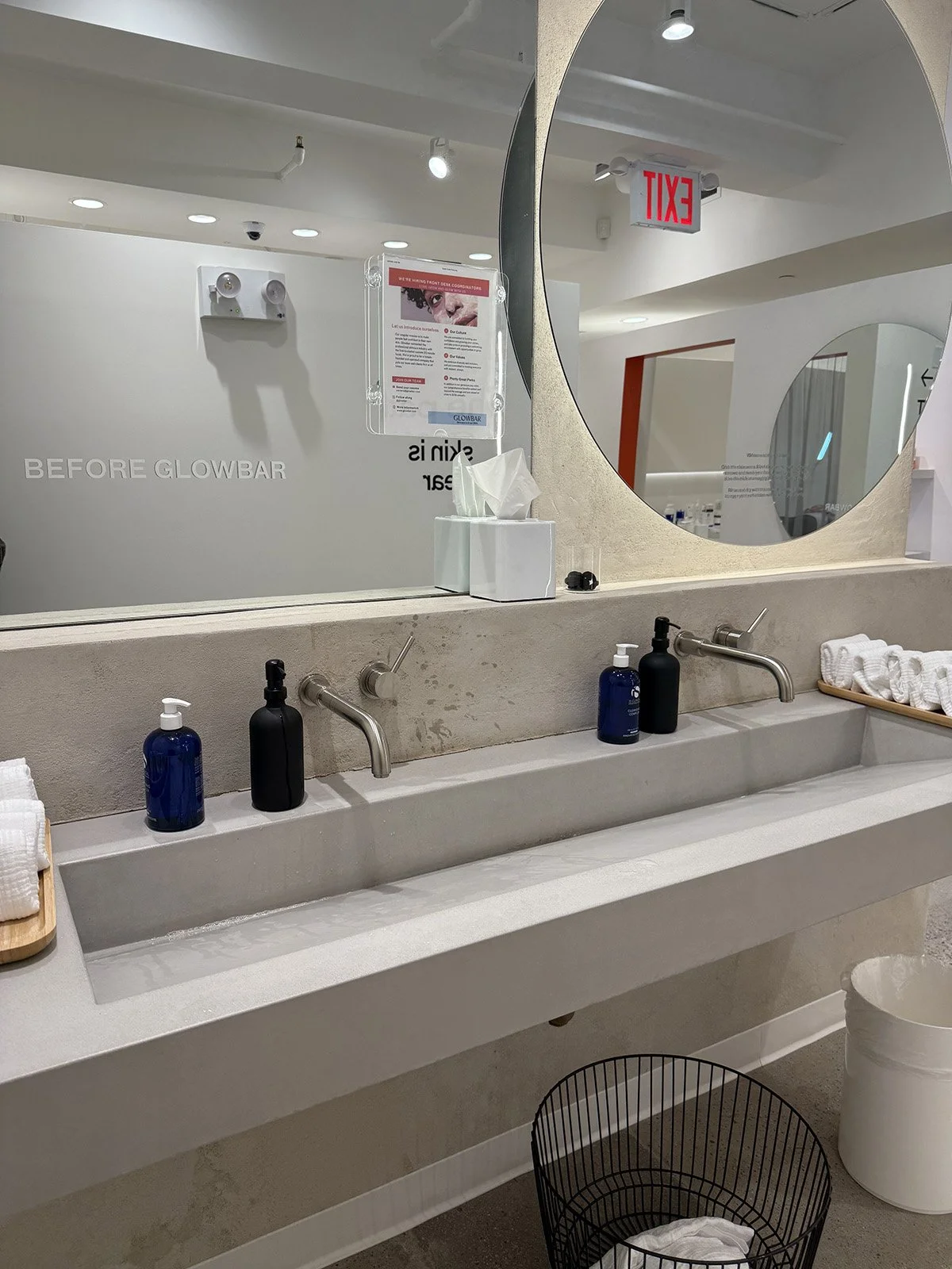 Once you’re checked in, you’re led to the Wash Bar, which was one of my favorite moments of my experience. The Wash Bar consists of multiple large mirrors and a double-faucet sink, along with a face cleanser and small face towels.