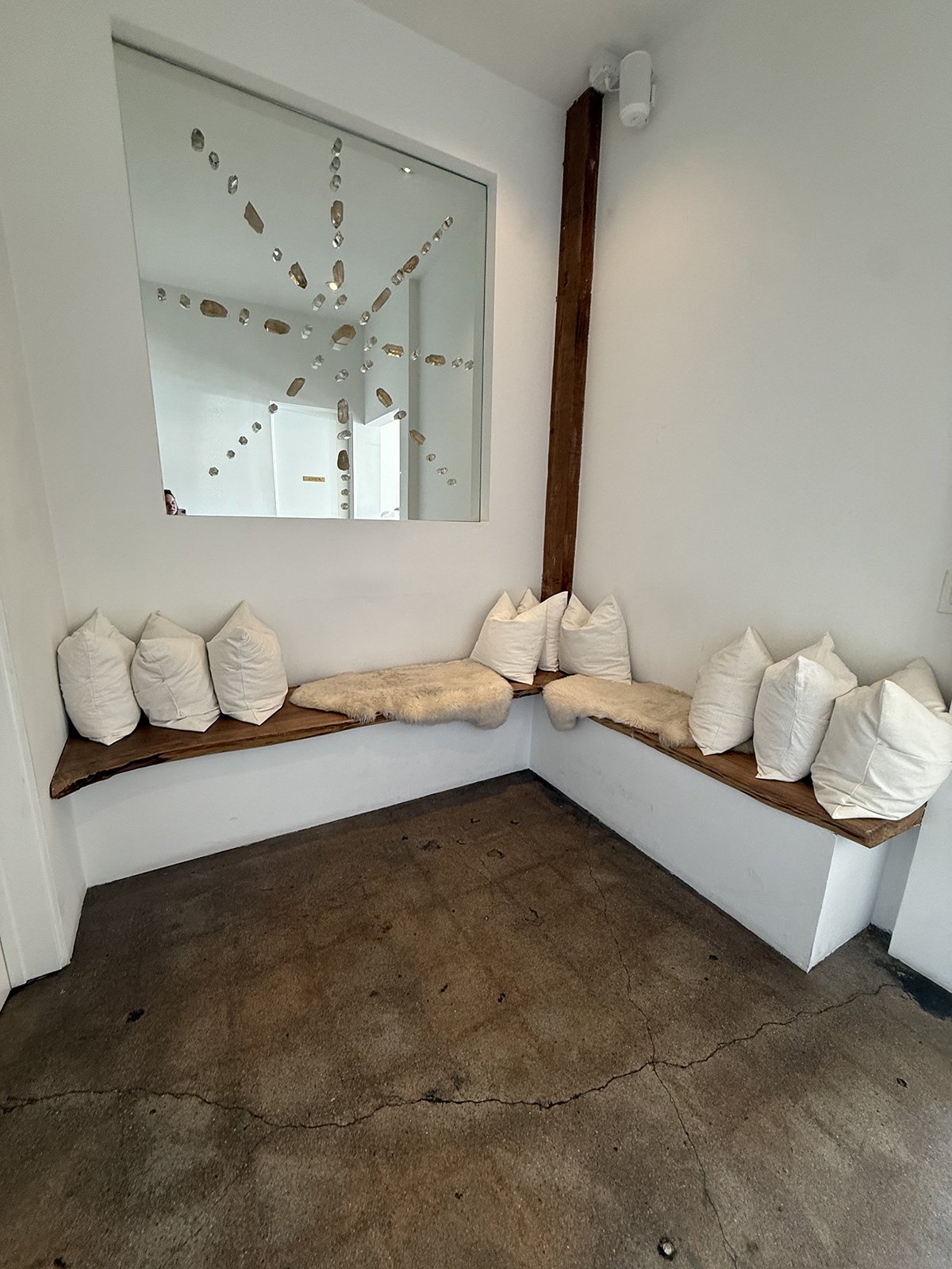 The NOW has a sitting area for guests with a crystal grid designed to amplify energy. Photo by of Jamie Sanders