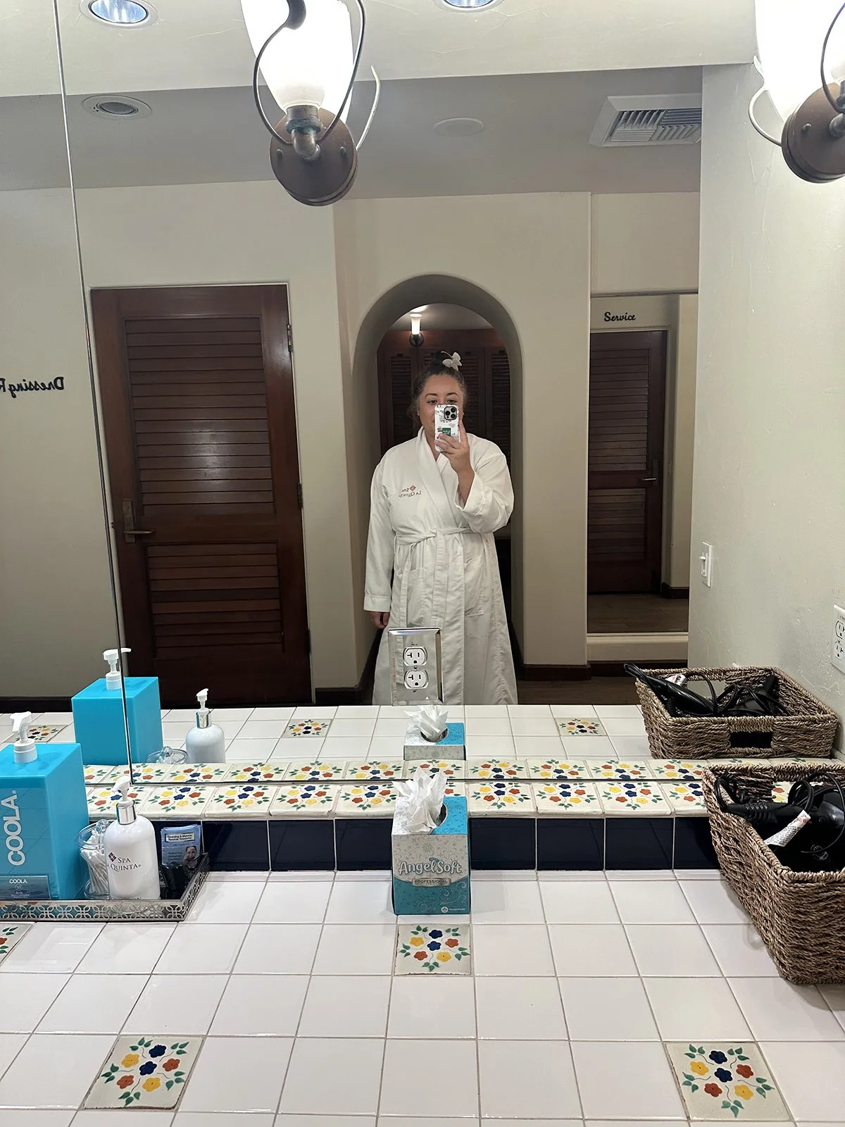 There is lots of water in this treatment and your hair will get wet, so skip the blowout (or schedule it after) you get this service. That being said, it’s incredibly hydrating and nourishing for skin, and is a great way to cool off in the desert heat. During the treatment, I was given a disposable pair of underwear and a bandeau top (similar to a bathing suit top) to wear.