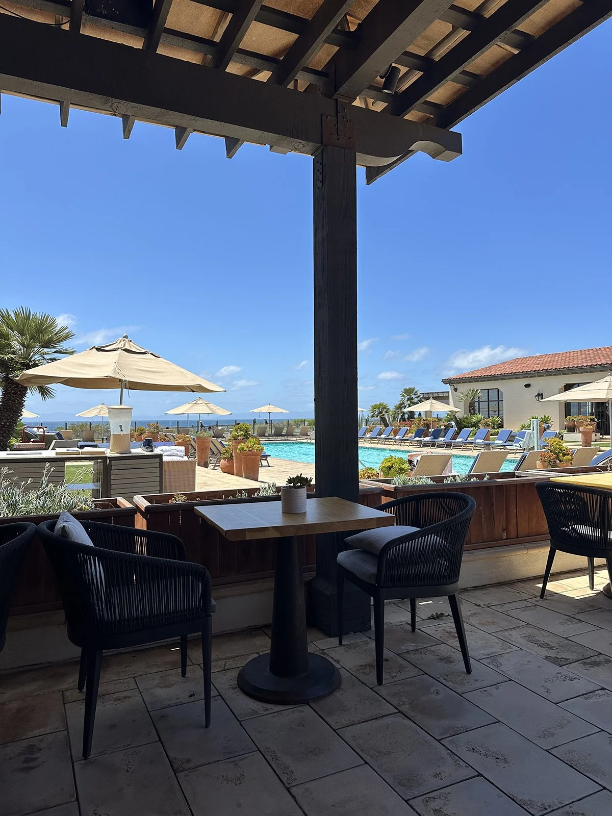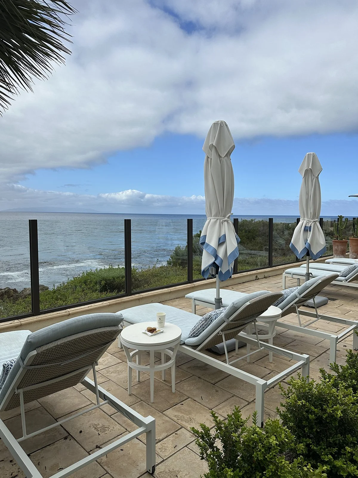 The marine layer was starting to disappear and the sun came out so I went outside to the spa’s outdoor lounge, which includes a hot tub, cold plunge, outdoor shower, and plenty of lounge chairs.