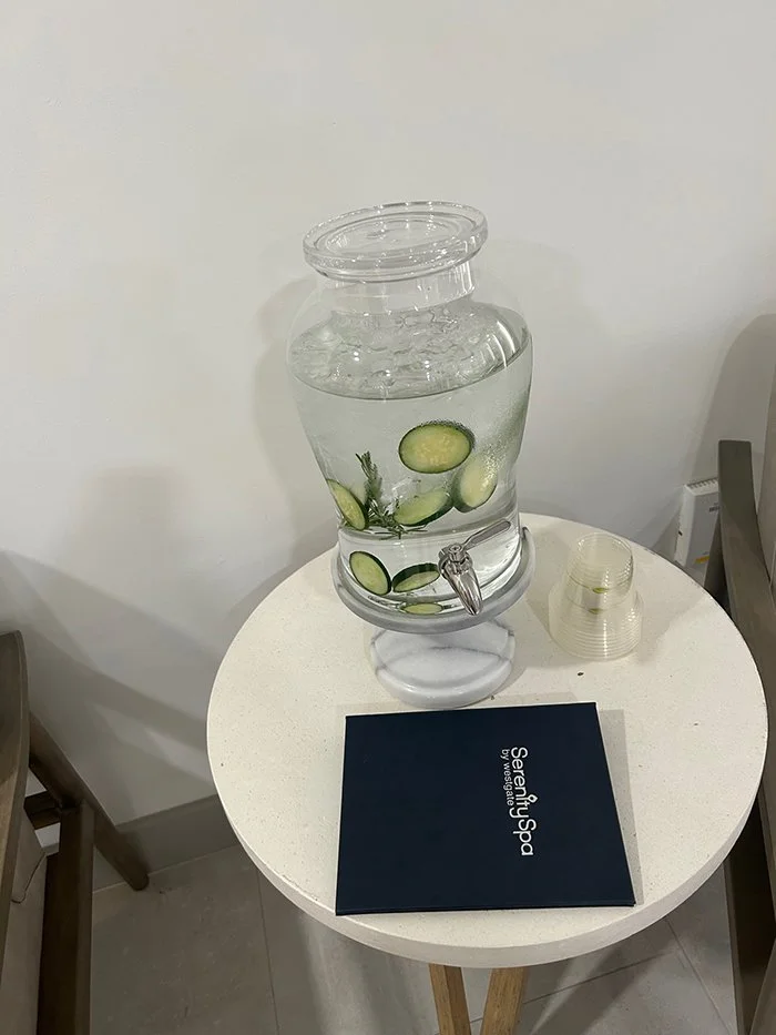 The spa is 30,000 square feet that encompasses 14 treatment rooms, a waterfall/pool room, steam rooms, and a relaxation lounge that includes spa snacks, infused water, and a menu of food if those are not enough.