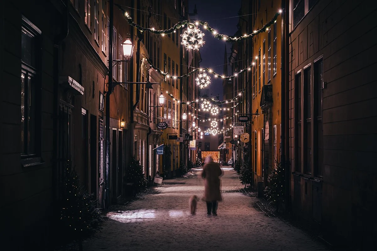 Winter night in Stockholm’s Old Town. Image courtesy of Oskar Scheller / Stockholm Business Region/imagebank.sweden.se.