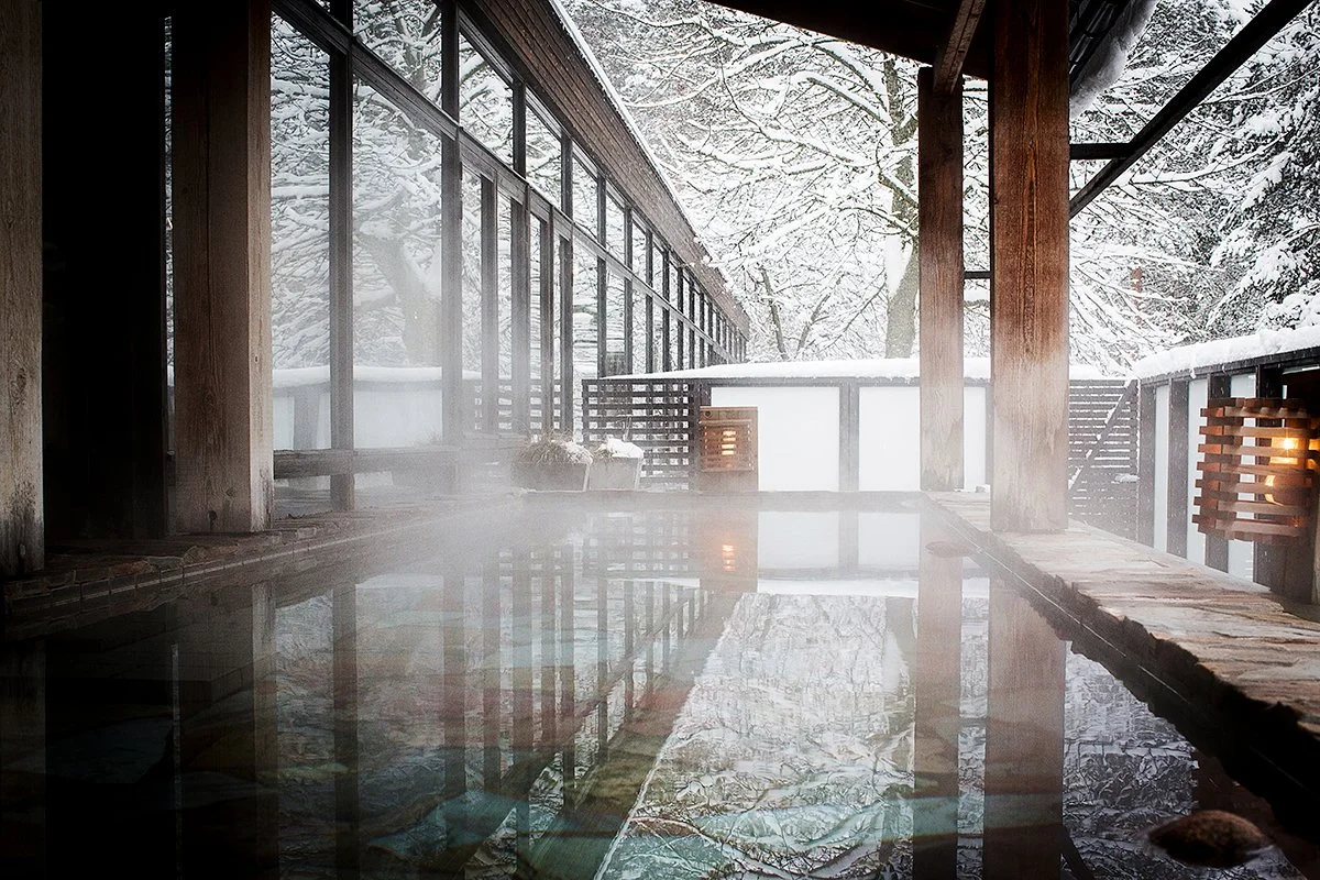 Japanese bath at Yasuragi in the winter. Image courtesy of Yasuragi.