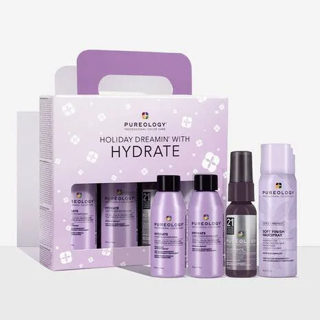 Pureology’s best-selling hydrating shampoo and conditioner are paired with their number one leave-in spray and soft-finish hairspray to create the perfect little kit that will moisturize and protect all hair types.
