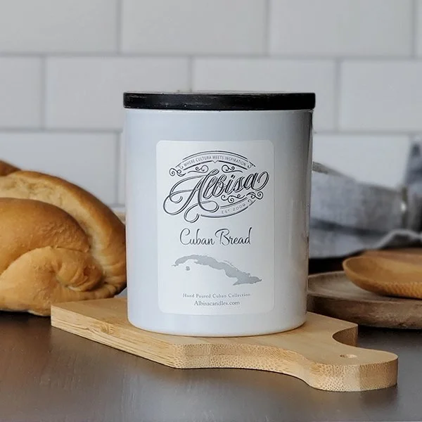 This candle features the savory aroma of fresh baked Cuban bread, so good that you can almost taste the salty crackling crust and doughy buttery center! Burn time of 40 to 50 hours. Albisa Candles was founded by Cuban-American Isabel Alvarez and is a line of hand-poured, premium soy candles that were inspired by her desire to bring her Hispanic heritage and the nostalgia of Cuban culture into modern-day life.