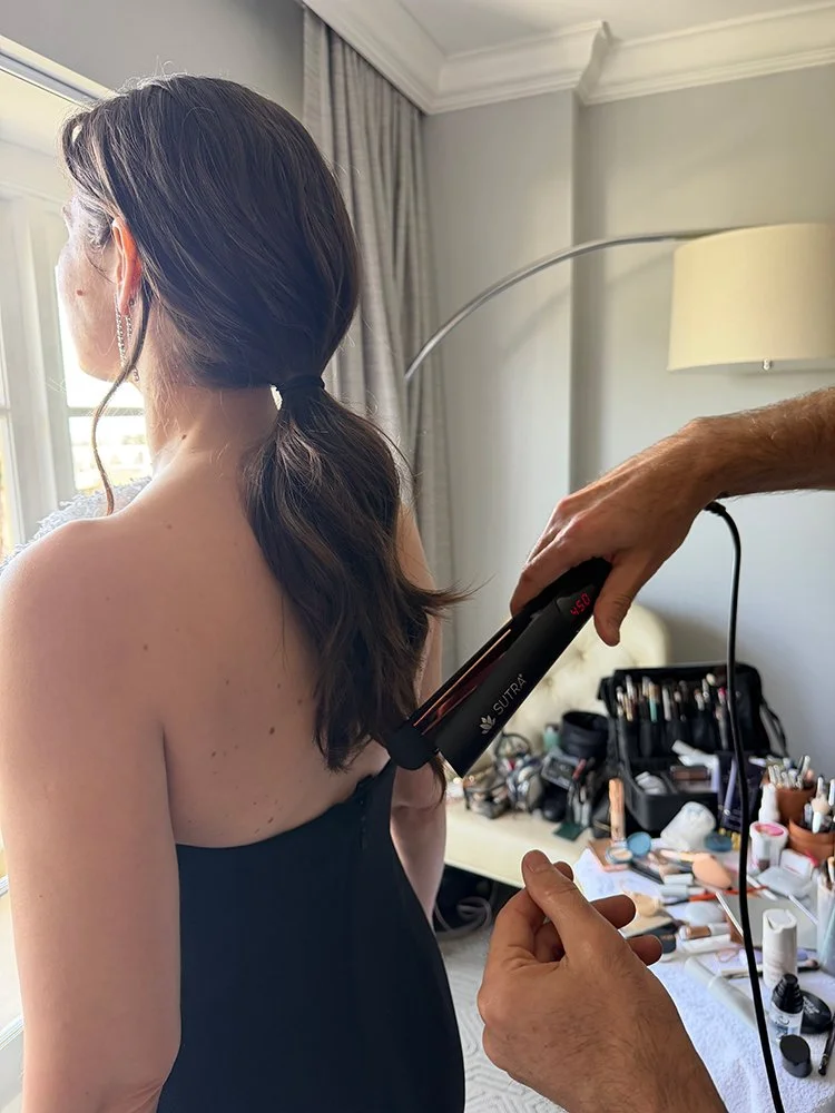 Stylist Christopher Naselli used Sutra IR2 Infrared 1” Flat Iron to style the Oscars look for actress Inga Ibsdotter Lilleaas. Image courtesy of Christopher Naselli.