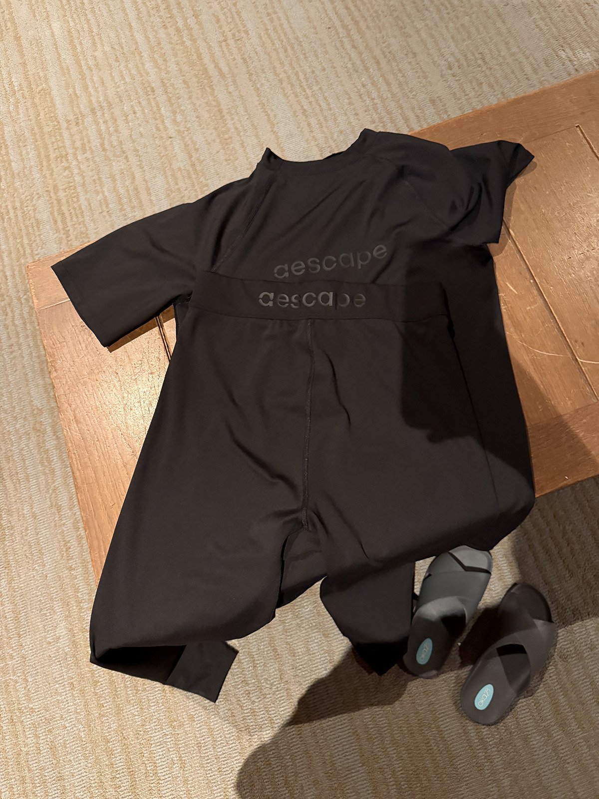 I changed into a wetsuit-like outfit prior to my Aescape massage. Courtesy of Jamie Sanders