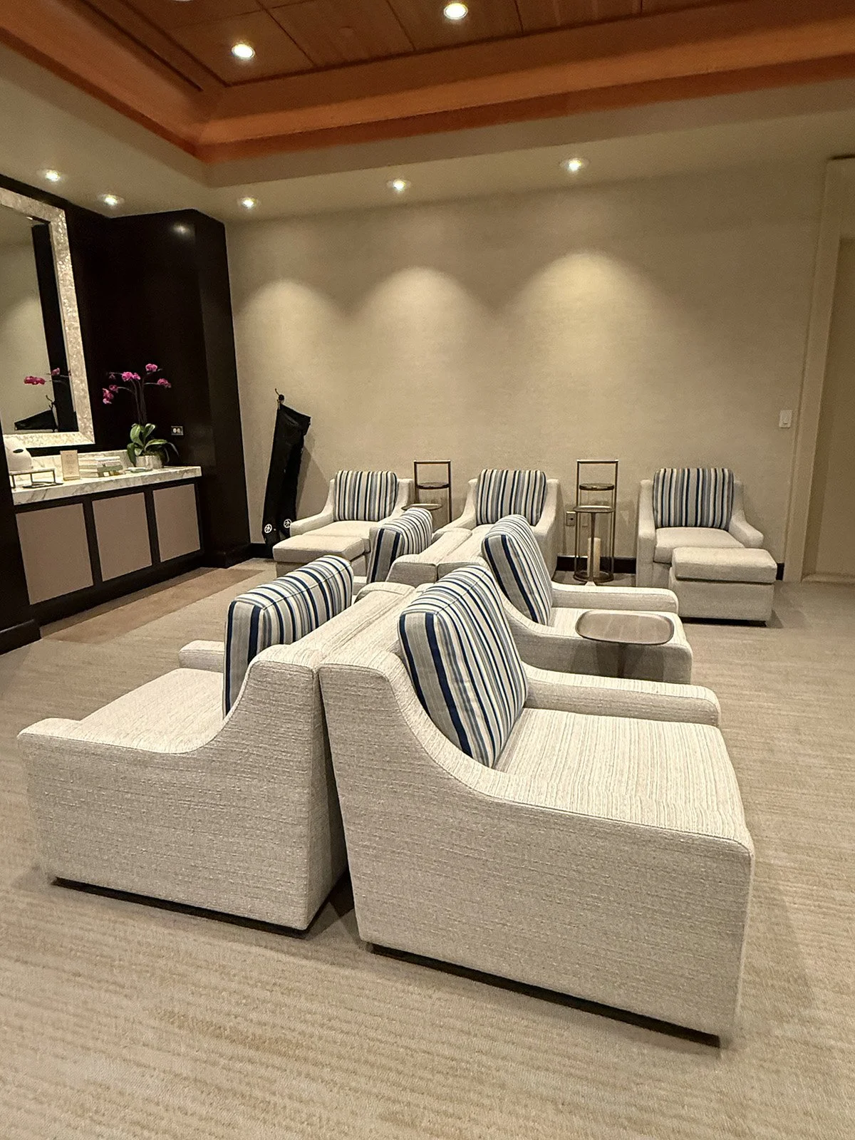 The spa’s relaxation lounge features comfortable chairs and an array of refreshments. Courtesy of Jamie Sanders