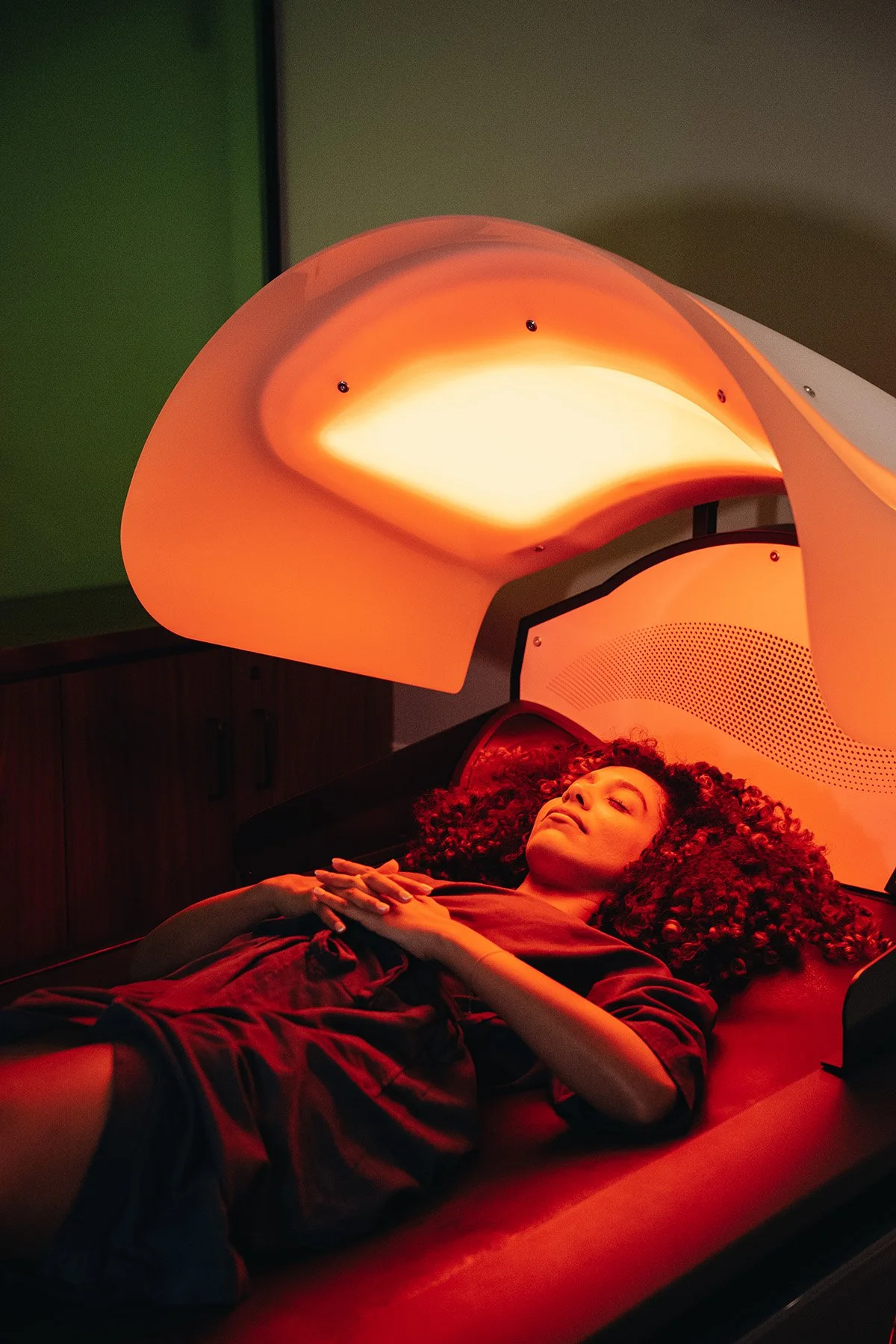 I also tried the NEO red-light therapy bed. For 10 minutes I lay in an enclosed chamber. With four choices that include Restore (inflammation, collagen stimulation), Pulse (sports recovery), Cleanse (skin improvement, bacteria reduction), and Calm (green light for migraines), I opted for Restore, which was a relaxing experience in and of itself.