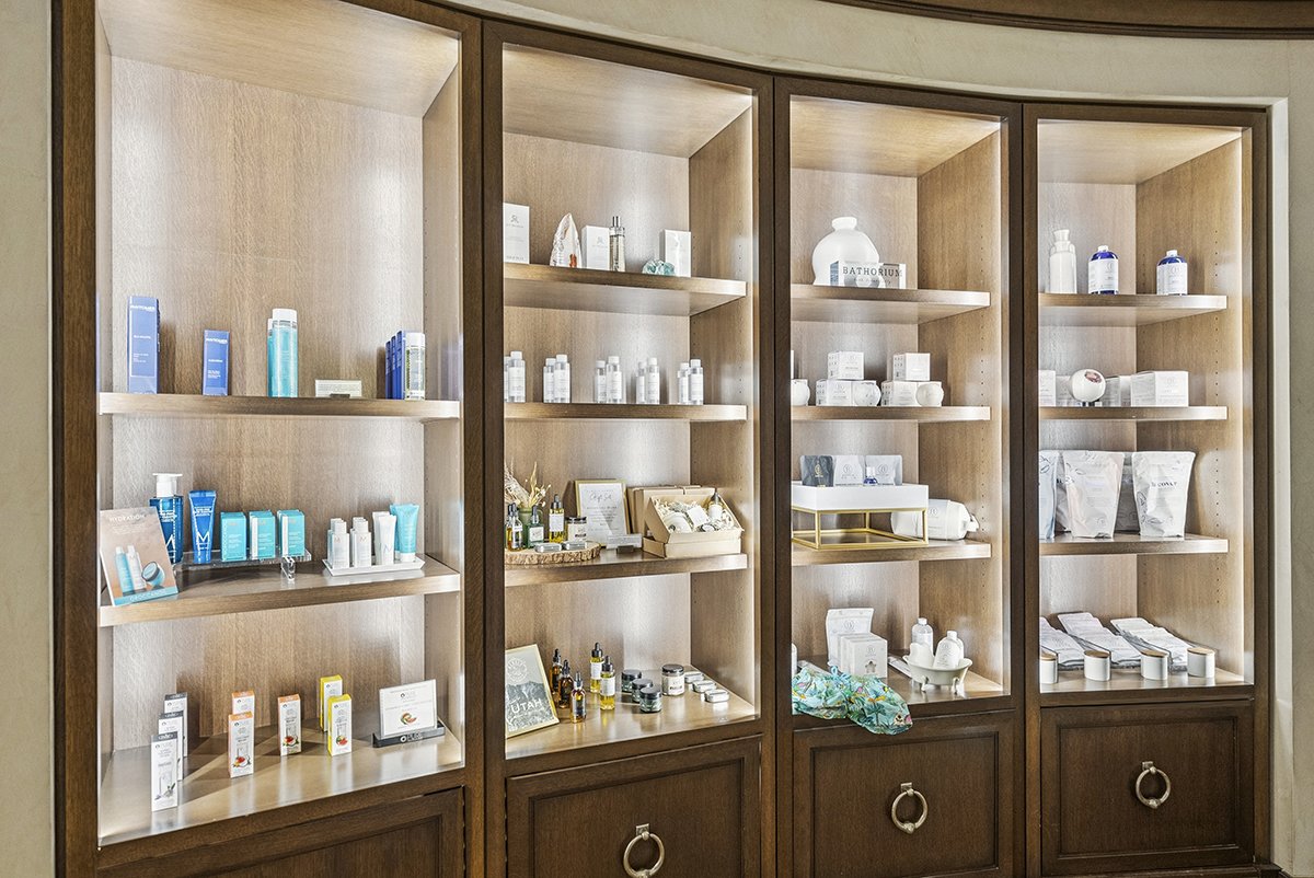 Retail shelves, selling a handful of luxury skincare and wellness lines including Phytomer. Photo courtesy of The St. Regis Deer Valley