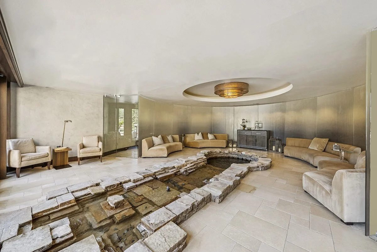 Beautiful tranquility lounge. A dreamy spot to relax between services with stone accents and mountain views.