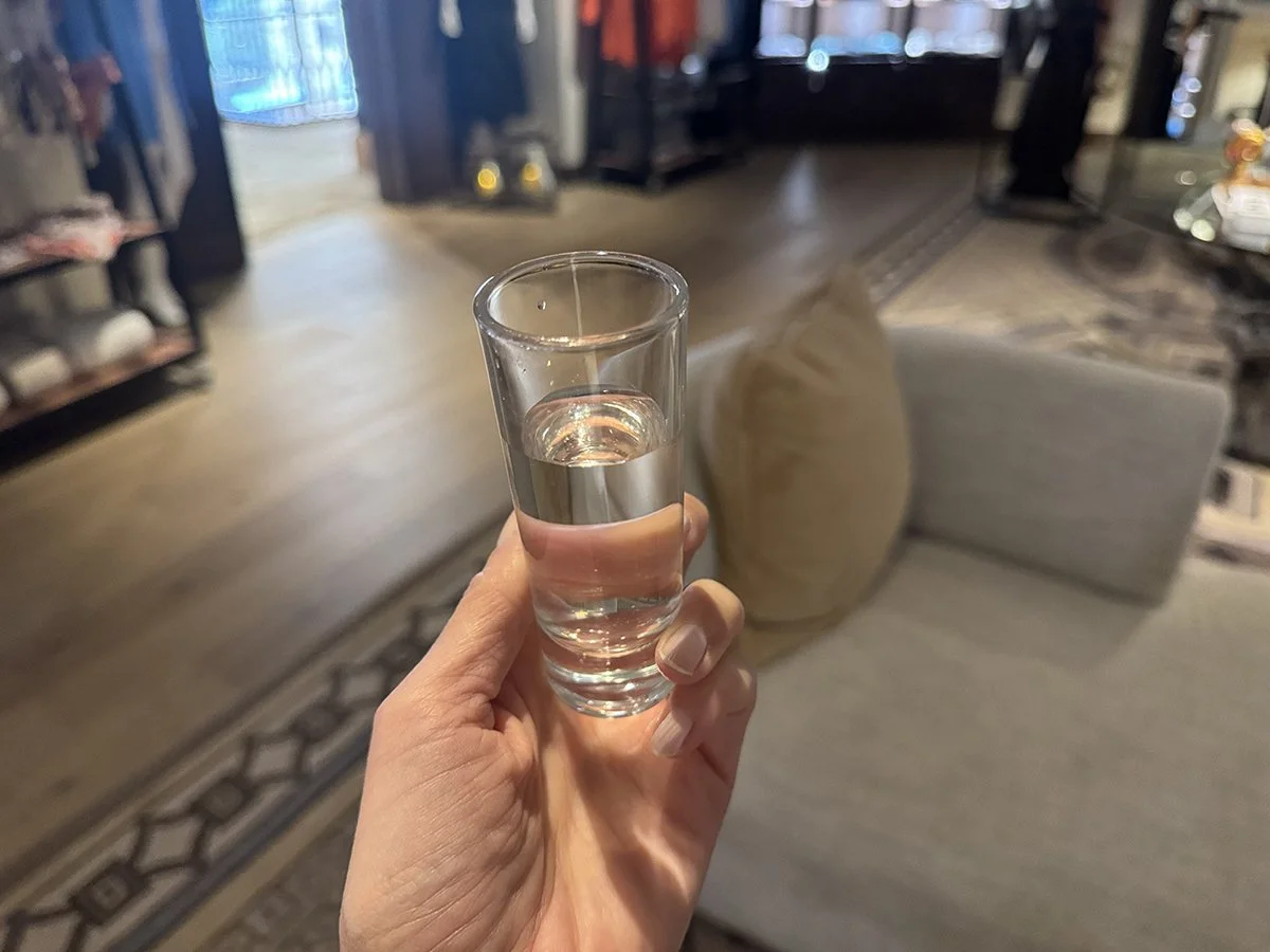A fruit-infused shot of wellness nutrients upon checking in at the spa. Photo by Alisha Racker