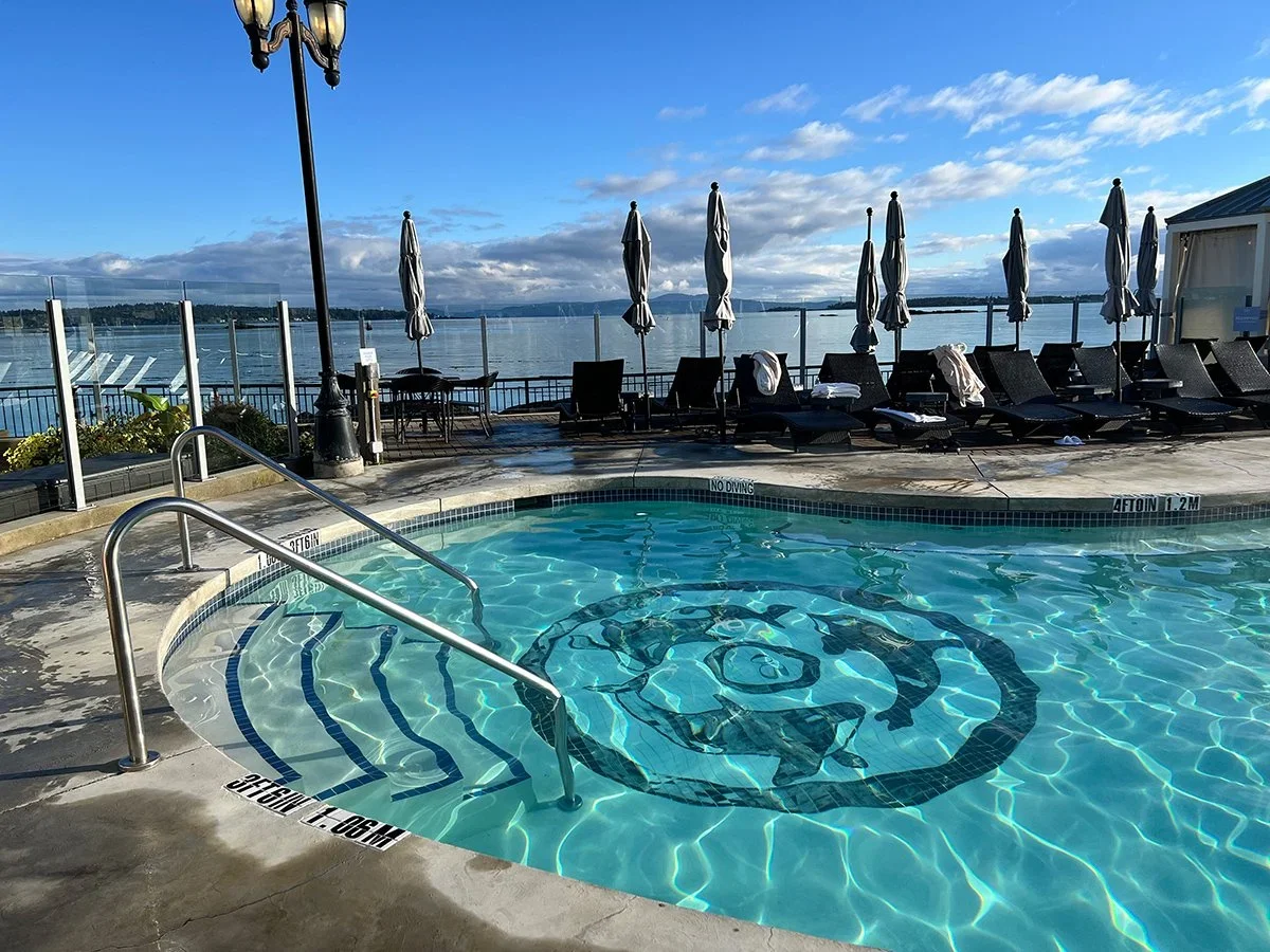 At Oak Bay Beach Hotel in Victoria guests can soak in calming mineral pools with breathtaking views of the Salish Sea. The oceanfront Boathouse Spa offers treatment rooms with sea views. And watch out for orca sightings!