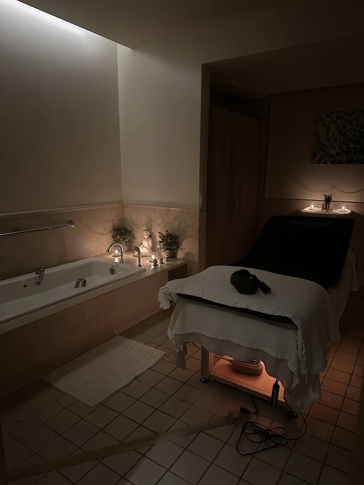 My next service was the Well Rested CBD Soak, which is the only treatment from the Renew Recovery Lounge that is not offered in the lounge since it includes a bath. I was led into another private room with a treatment table and bathtub surrounded by relaxing tea-light candles.