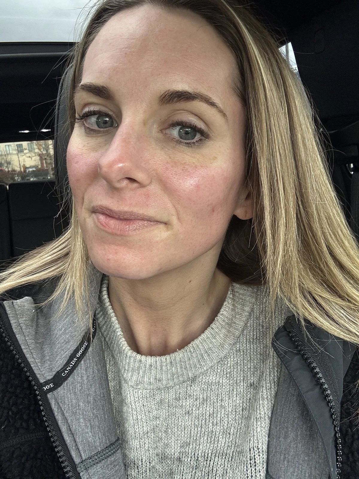 Immediately following the session, my skin was slightly flushed and felt similar to a mild windburn. By day two, that redness shifted into a rough, almost sandpaper-like texture—a completely normal part of the fractional laser process as the skin begins to shed old cells and regenerate.