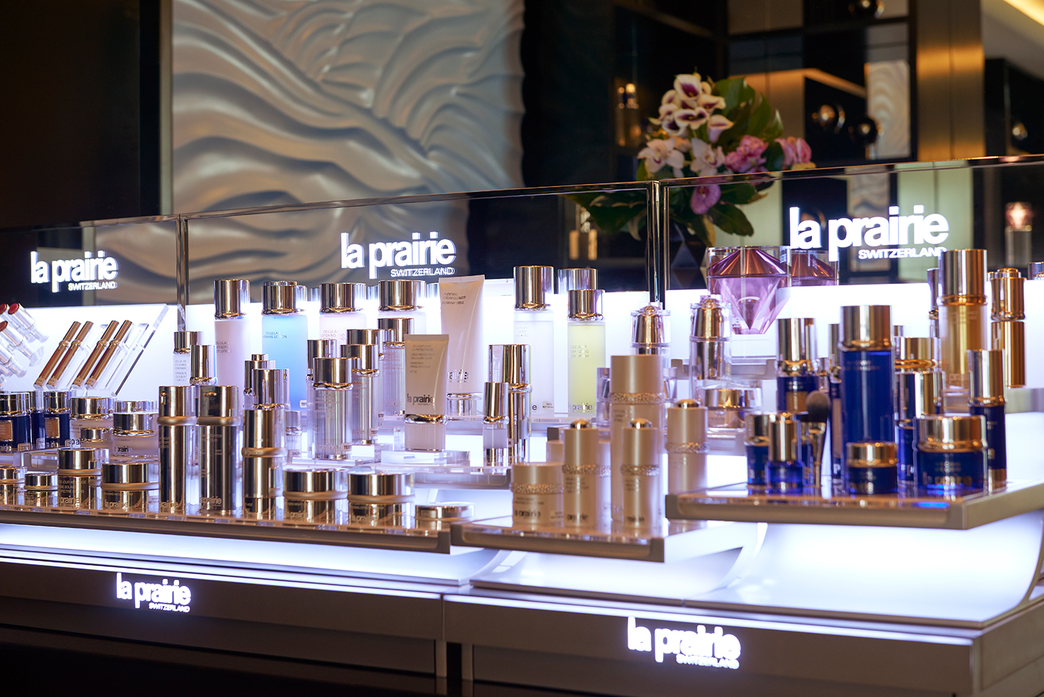 La Prairie product display at the La Prairie Spa at the Waldorf Astoria in Beverly Hills.